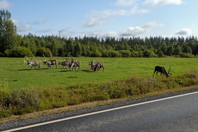 We had a steep climb out of the laavu area on the river and then another climb up to the supermarket on the main road! Wow, we were quite puffed when we arrived! One way to wake up. We did the shopping for the day and set off. The road was quite hilly, lots of ups and downs and we turned off it onto the road to Ranua after 10km or so. It was a good road but with not much happening. We are no longer in Lapland so farming is more and more noticeable, but there is still a lot of forest and open countryside. We also saw a few reindeers, making their usual nuisance on the road and refusing to get off when trucks and cars bear down on them. We both felt a bit "under the weather today" and for some reason it felt like a bit of an effort. It could be that now that we have reached our "goal" at Karesuando and have had the hotel stay in Rovaniemi, it feels like we haven't much to look forward to? We have experienced this before. We are both feeling annoyed about the bugs as an added problem that just does not go away! Hopefully as we move south they will. The trip still has a way to go though, over 2 weeks of cycling left. We are currently in a line to the top of the Gulf of Bothnia and will go to the coast in a few days, so that will be some variety!