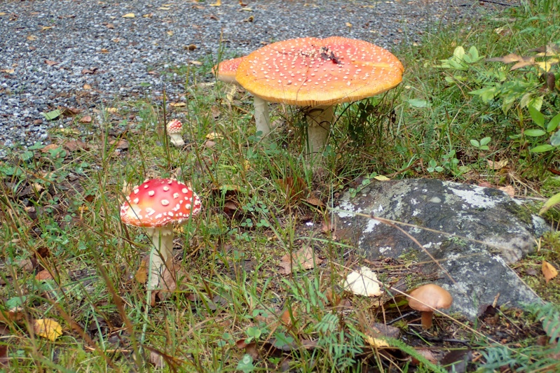 After our break we had 25 km to the campspot, along a road that was a bit uppy-downy. We turned off it into the forest and to this little lake with a lovely laavu where we could relax. A couple of hikers walked through during the afternoon and chatted to us. We had a fire with the wood provided (Murphy's Law) and used up our extra briquettes to roast marshmallows (you can always eat them raw!). We must mentiion the MUSHROOMS. Of course berry season and mushroom season are both on the go now and we see mushroooms of every type and description, some as large as dinner plates. It is not unusual to camp and wake up in the morning to newly popped out mushrooms. Today though we saw our first actual red toadstools with white spots as in the fairy stories. When we saw the first few at someone's front gate, I thought they were ornaments! Then we saw more in the forest. Will try and get a pic tomorrow morning on the way out.