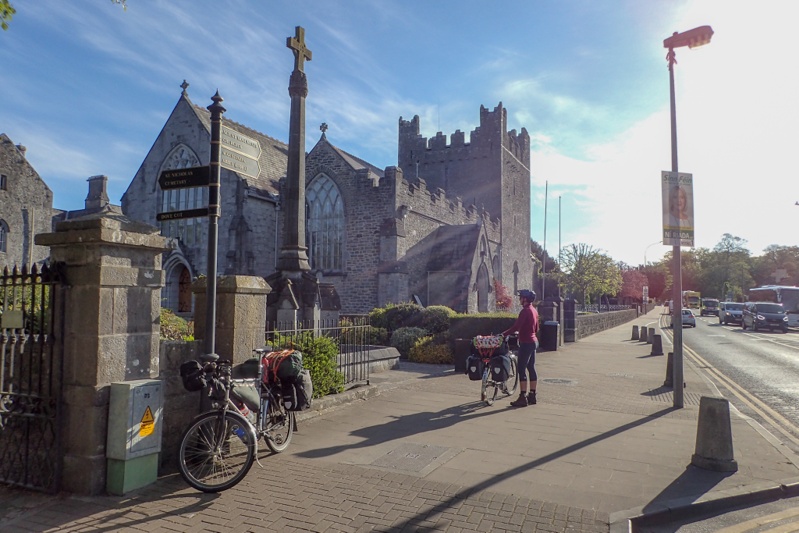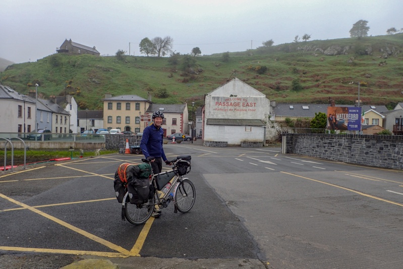 Another misty morning. Ever the optimists we left in rain jackets for warmth, hoping it would clear. Of course it did not and we were in various forms of dampness all day, from mist to drizzle to rain and back again. The riding however was wonderful. We had 20km to Waterford via the Ballyhack ferry. This was cool as we caught this same ferry on our last trip to Ireland, but went in a different direction afterwards. It was a cold day but the ride to Waterford went quickly. The roads are really good. Waterford had good cycleways in and out, and is a nice city to visit. We went into the display rooms of Waterford Crystal and were very impressed by the large crystal items on display and for sale. Amazing workmanship to a degree you would never see in usual retails stores. We went to an outdoor store and Mike bought some gaiters to add to his wet weather gear. Ireland is surely the place to do (need) it!