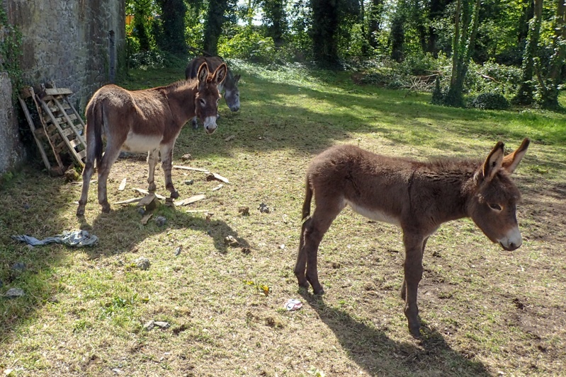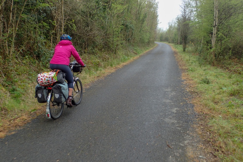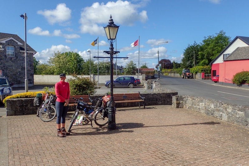 First stop today was at the end of our road where we spoke to two donkeys. They were expecting treats I think and we had none so that was disappointing for them. We had a 25km ride up a slight hill to Strokestown where we would need to do a lot of food shopping as we planned a rest day tomorrow at Lough Arrow. We were pedalling along when an older man came riding his bike towards us, wearing his wellingtons. As he drew near and we were about to greet him, we noticed he had picked a bunch of wildflowers which he made as if to offer to me. I said, "For me?" and we both laughed. "Top of the morning!" he yelled with a smile. The Irish are a treat! The little farm roads were great condition and continued to Strokestown. We stopped to shop and ate brunch while sitting at a table with some stools on the main interesection of the town; it felt very European. I suppose that's because it is European! I love cycle touring on a Sunday, when the roads are quiet and there is no one about. We packed all the food away and headed off.