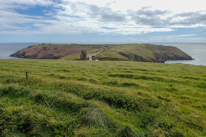 We were keen to get to the Head of Kinsale which is a headland of historic significance. Part of this is the sinking of the Lusitania out to sea here by a U boat in 1915. It was a bit of a climb to get out there but the views were beautiful and panaromic. We could not believe how far you could see in every direction, especially after all the misty days we have had! A couple of campervans had stopped up there too, with the people not even bothering to get out of their vans! We spent some time out there and then headed back, ending along the water's edge again as the Wild Atlantic Way hugged the water's edge. We had quite a headwind (westerly) but it was ok. I had been very tired all day with various aches and pains so our progress was slow. We ended up at the campsite at 16:15 which was a long day, but not bad considering all the things we did during the day. The campsite is great, hot showers (included in the price) and cows live over the road.