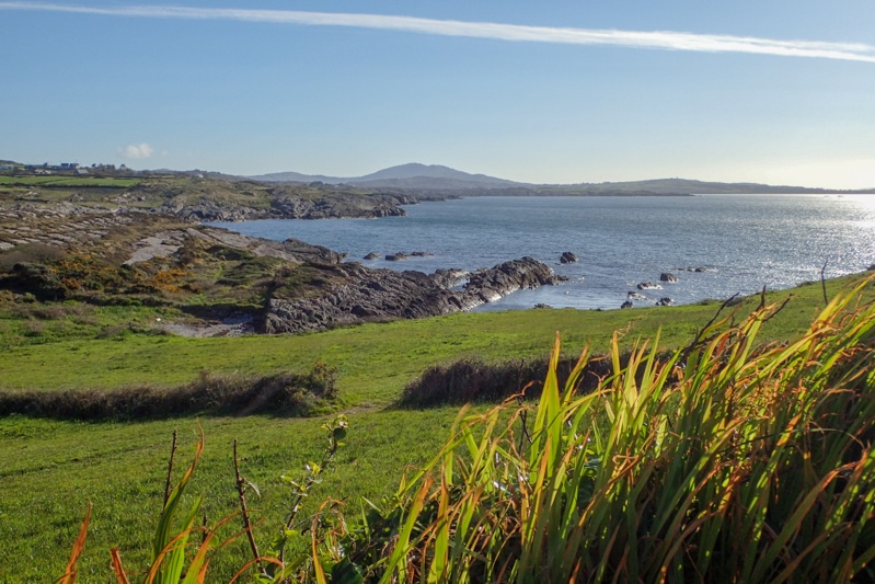 We loved that bush camp last night and it was lovely this morning too. The whales were still in the bay which was very calm. We had a rollacking downhill ride to Marghery settlement. So picturesque. It felt remote out there. Imagine our suprise when the first little village we came to had an Aldi and a Lidl. Always in tandem; we shop either at Lidl or Supavalu. After this we had a choice of three roads, very busy, less busy and cycleway (which could kill us). We chose less busy after seeing a lady cyclist almost taken out a few meters to our right when a car turned across her to get to Aldi. Or Lidl. She said "feckin eejit" which is an Irish expression. The less busy road took us round the corner and then the cycleway looked inviting so we took that. After a few kilometers of it being quite welll-behaved, it took a turn for the worse with a crap surface and crazy hills. We took a turn off to the less busy road which added a few kilometres but was great, a bit uppy downy but through some great coastal scenery and also farmland.