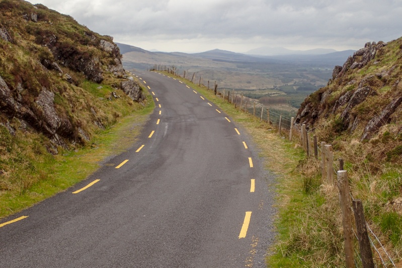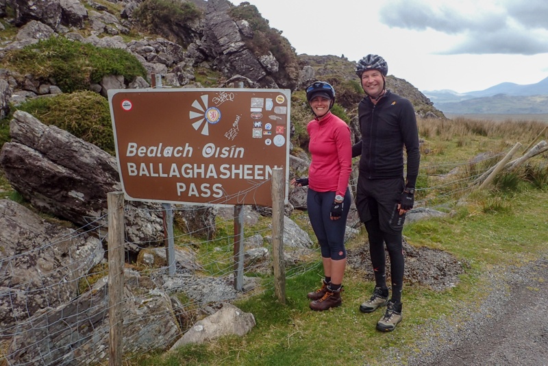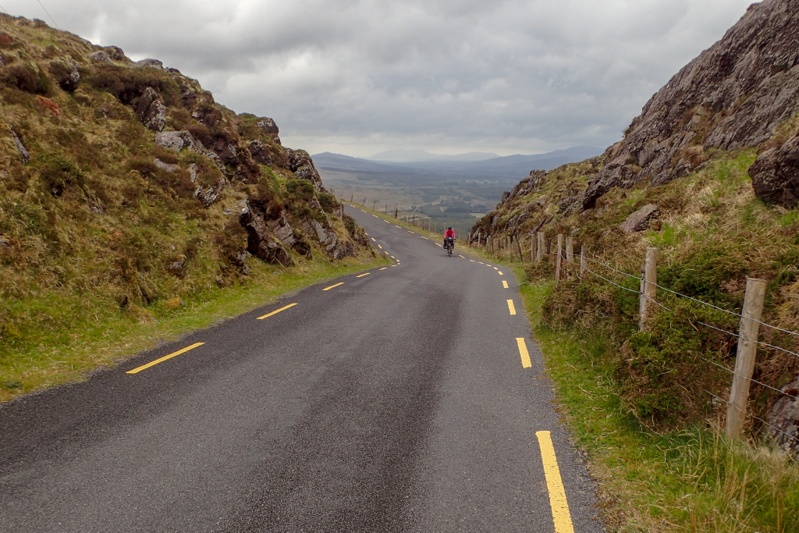 As we made breakfast and packed up, we were observed from up high by two rogue sheep on the clifftop. Mike reckoned they were gathering forces to stage a quick attack. We managed to set off unscathed and were provided with magnificent views of the coastline as we descended into Waterville. It is a lovely village, makes great use of it's position. We bought some food and some petrol for the stove and set off towards the dizzy heights of Balaghisheen Pass (I spell it differently each time I need to write it). As we were going along the narrow little road after Waterville, we passed a lady walking who asked us where we were from and told us her daughter lived in Perth for a year and she went for a visit and loved it. She especially loved King's Park and they had cycled round it on a tandem they had hired. It is great to be able to tell people that we live on it's doorstep.