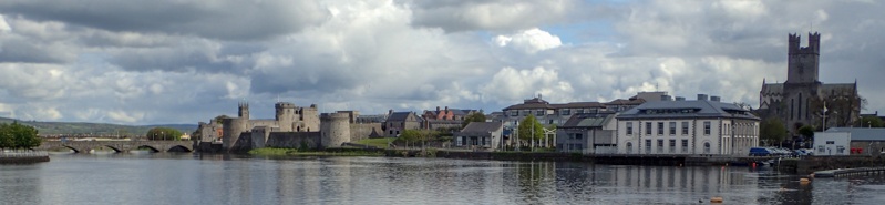 As usual, small farm roads with little traffic made up the fabric of our ride today. Many cows to see, some donkeys. Pretty farm houses. When you start getting used this sort of view, you are really spoilt. Next stop, Limerick city. This is the biggest town we have seen since London. It had a great cycle way going in. First city we've seen wiith a 24 hour shared bus/bike lane. Usually they are only during peak times. No buses to speak of anyway! We had seen a place called the Milk Market advertised for all sorts of meals etc., a food market. Unfortunately it was not open yet at 10:00. We bought a warm meal elsewhere and sat outside to eat. The weather was good and the views of King John's Castle over the River Shannon were great. Limerick though, not so great. The place had a bit of a sad atmosphere. Or maybe that is just my memories of Frank McCourt's Limerick (there is a museum for him housed in the old schoolhouse he taught at). There seems to be a lot of people, men actually just hanging around. We left as soon as we could, now towards our end point at Lough Derg.