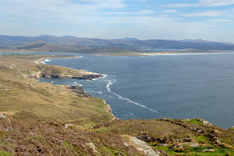 We had a relaxing day off yesterday and decided to amend our route slightly from Sligo to Donegal. We set off at 07:30 and had a quick 35km to Sligo. Just before the town we joined the cycle route and were on it again after the town. We quickly learned once again that cycle routes are for the birds. 14% gradient climb. I ask you? Especially when there is a perfectly good, albeit busier road with a proper shoulder to ride in? We made some changes on the fly and smoothed out some of these crazy climbs. We stopped in Sligo to eat and I bought a hat. The landscape is once again different, with steep mountain slopes and the famous hills around Sligo. Then we were back on the coast with dunescapes and sea views once again.