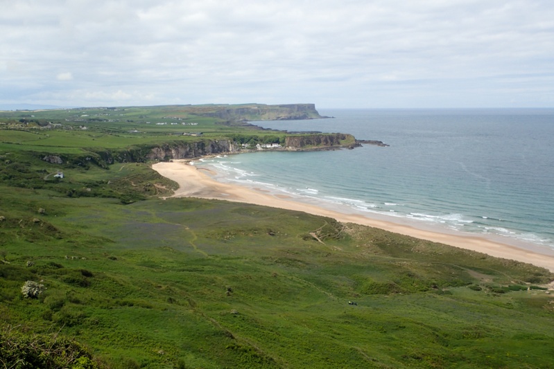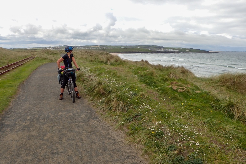 The rain continued off and on all night and even when we woke up this morning it was still raining lightly; just a typical Irish shower. We wore rainpants and booties but it was really too warm for rain jackets and anyway, by the time we set off the rain had stopped and it was just heavily overcast. One of the campers came to have a chat, he was from Rotterdam, the Netherlands. Ireland seems a popular holiday destination for older Dutch couples who come over with their campervans from France (Cherbourg - Rosslare usually). We have met quite a few. They tend to spend a long time in Ireland, certainly over a month, slowly travelling round to all the places they want to see. We also met an Anglican minister who was in Derry for a conference of all clergy in Ireland - about 600 from all the teeny tiny places we have been too. His colleague had lived and worked in Cape Town for sometime but we did not meet him. Anyway, we set off at 08:00 as usual and as it was Sunday there was no traffic. Derry is the first town that we have come across of any size with very restricted shopping hours on Sundays, nothing is open before 13:00. This was the case even in Coleraine, our destination town.