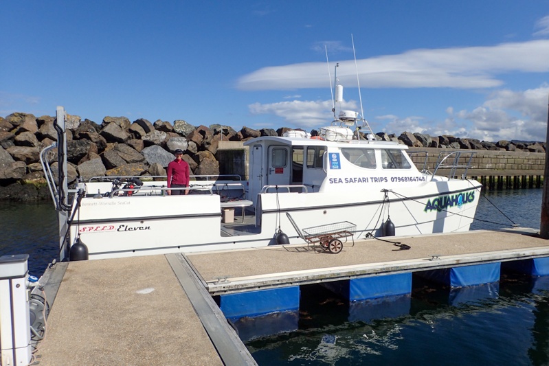The road from the Causeway to Ballycastle is a great ride and we really enjoyed it and would recommend it. The views are absolutely beautiful and we were lucky as we had it on the perfect day. The headland after Ballycastle was completely clear and you could see the Scottish mainland from the Irish coast. We got to Ballycastle quite early and went for a fish and chip lunch at the Golden Chip. Delicious! The harbour area is very pretty and has lots of benches about. The main ferry to use the harbour is the ferry to Rathlin Island which is a car ferry, although many people seem to go for the day, leaving their car behind. A few people were interested in our travels and asked where we were off to. They all looked suprised that you could catch a pedestrian ferry from here to Campbelltown. This made us a little apprehensive, particurarly when Kintyre Express messaged us to say that their boat was undergoing maintenance today so Aquaholics was taking over the ferry service. Also there was no information at the little harbour about where the boat leaves from or anything. I asked at the tourist office and the lady confirmed the map we had which showed the pick up point at the marina.