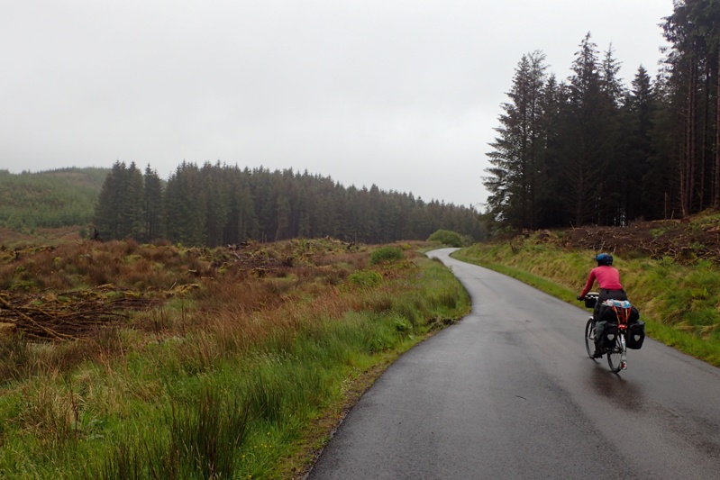 We stopped in Brodick for a delicious pizza lunch and then did some food shopping for later. We also went to the outdoor store and got more bug repellent (Smidge is the local brand, we''ll let you know how it goes), some new gloves for me (all my wool ones have holes in the fingers) and some Kendal Mint Cake (yum). We relaxed in the sun a bit and then back on the bikes for the last climb of the day, first out of Brodick to Lamlash and then the major climb which was an unsealed forestry road that would see us climb over 250m over it's length. It was a solid climb and the surface was reasonable but after the climbing we had done today already I found it difficult in parts. We thought we would camp at a river overlooking the falls but forestry activity there prevented it. A large tract of forest had been harvested and they were relocating the logs. We had a swim in the river anyway and then climbed another 2 or 3 km until we found a suitable bushcamp. We like it as it is in the open and does not seem to have any bugs. All in all we climbed over 1400m over the day many of which were at grades greater than 10%, which is a difficult day. It was after 18:00 when we pitched the tent, so that was a long day. We love Arran though, but will only spend one night here.