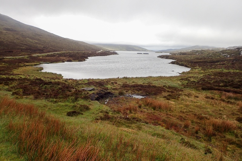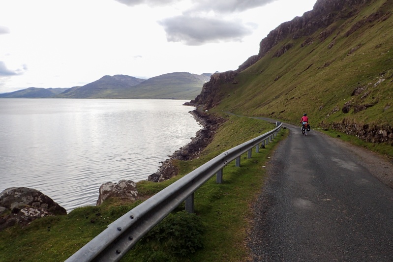 Wow, it did rain hard and for hours. There was a little stream which ran to the loch from a small culvert under the road just near our tent and that became a raging river which overflowed it's banks a bit at one point. We enjoyed lying in though as we only had 25km to the Tarbert and the ferry port, and kept an eye on it. We thought we would leave at around 13:00 and as the rain started to lessen before then we packed up and left. It was a beautiful ride through, spectacular scenery with one main climb which was well-graded. The road was quiet and any motorists were considerate and pulled over for us. The road was narrow single-track but there were two lanes in parts. We would highly recommend this route for cycle tourists, although the cycle route goes to Tarbert via the west coast road. We dropped into Uig a couple of hours before the ferry was due to depart (16:25) and got changed. Some people we had met walking the Hebridean Way had told us that there was a free shower available at the busport, but when I went to look for it the toilet facilities at the busport were closed. Everything is closed in Tarbert (and most of Harris) on Sundays.