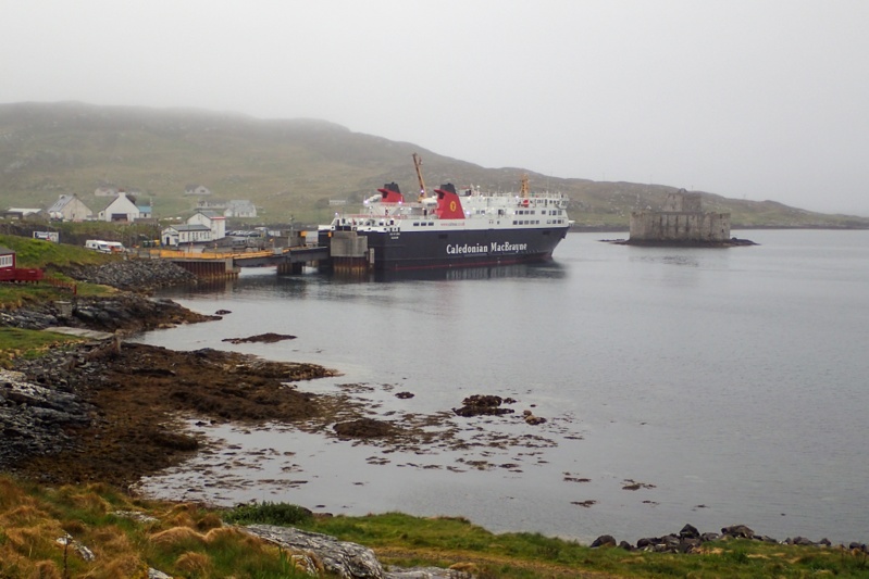 We were up early as we considered whether we couldmake the 07:40 ferry to Oban. We thought it would be a rush. The 15km still passed quickly and we drew in to Craignure with 5min to spare. There wasn't actually a 07:40 ferry to Oban on a Thursday, but there was an 08:40 one which was perfect. We got changed, bought tickets and then the ferry was there. It had been a dry cycle so that was good. Another cycle tourist chatted to us. He had camped at the holiday park at Craignure and was headed back via train from Oban to Edinburgh today. He had done a bit of touring in Morocco and it sounds like a brillant place to tour for us, something to consider. We arrived in Oban and immediately purchased our ferry tickets for 13:30 to the Outer Hebrides, which gave as three hours. We set off for Tesco and had a cooked breakfast in the cafe and stocked up with supplies. We then went back to the free shower and used that, which was brilliant. Then back to wait for the ferry. There were lots of cycle tourists waiting to board as well. There was misty rain which became quite heavy as we waited so we had wet weather gear on.