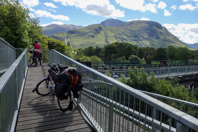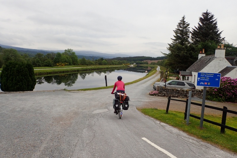 Oooh, hotel very, very nice! We are very clean and well-rested! We hit the road at 11:00. Can you believe it - the sun was out! We have struck Ben Nevis on one of only 70 days per year that it is fully visible. JACKPOT! We popped off happy as larks and stopped to buy some eats on the way to rejoin Cycle Route 78 (the very same one we set out on from Campbelltown, Kintyre so long ago). The route quickly brings you to the Caledonian Canal, an engineering marvel which joins Fort William and Inverness by a series of locks (and Lochs!) to enable boats to travel from one coast to another. It's been around for over a hundred years. The route today followed this canal, as well as going away from the canal into forest areas and also directly along Loch Lochie and Loch Oich. We would highly recommend this route. It was completed only a few years ago and is brilliant. There are a variety of surfaces and views - best one being the view of the main drag opposite the canal full of campervans, trucks and cars which you don't have to think about as the route is car-free (except for about 500m). There are also a few Approved Wild Camping spots with tent areas, compost toilets and access to fresh water. Winner! The Great Glen Way is a cycle route, hiking trail and also canoe route. We saw quite a few hikers and spoke to a guy from Edinburgh who was camping at one of the wild camps, as well as a girl from Switzerland who told us of her adventures hiking in Skye in severe weather on Trotternish just a few days prior to us being there. We chose to camp at Leiterfearn Wild Camp and had a great loch swim. The campsite is lovely, in the open so not too many bugs. Tomorrow we continue along the canal to Fort Augustus and then a climb up and over into Inverness.
