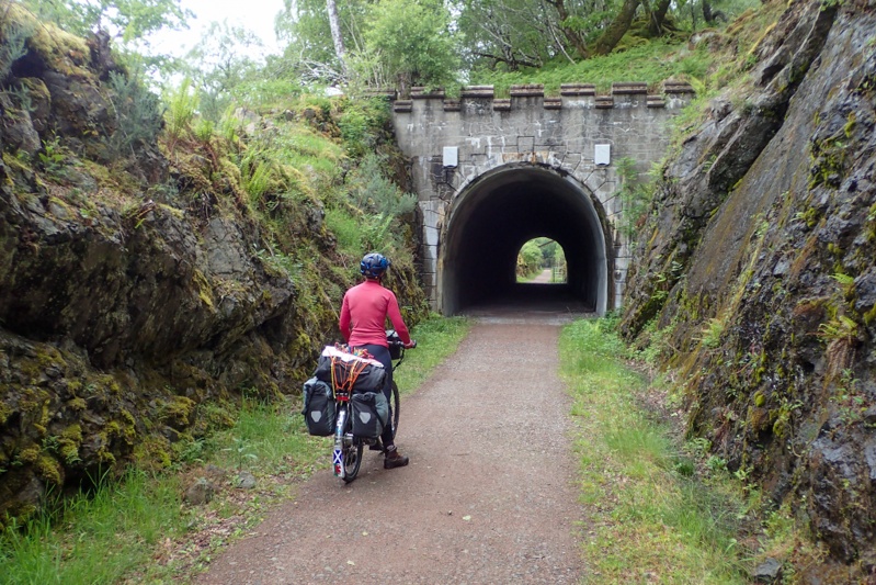 After lunch we set off with about 30km to go. Cycle route hacked us off by going uppy downy and we considered stopping at beautiful Loch Moran after 6km. However the signs at all the little pull off areas advised "No Camping" and more strenously than that, there was also a handmade sign advertising Midge Repellant stronger than DEET. As I said to Mike, instead of these "No camping" signs these communites put up, which are not even legal anyway according to the Scottish Outdoors Access Code, they should just make signs which say "If you camp here you will regret it - Midge Heaven". We decided to go back to our route where lo and behold we discovered that there is a dedicated cycle lane all along the main road to Fort William. This will mean that we can chop off an entire loop on our route that we put in due to concerns about this road. We even came across a bloke who lives in Fort William and works in Mallaig and catches the train one way and cycles the other (he was on his way home). Anyway, it was raining again and we came across a cute bush camp at a river and called it a day. We had a reasonable rinse off in a nearby stream. We got an text from Post Office Lady to say that Royal Mail considered they have met their service committment in delivering our item to the post point in Mallaig and it was not their fault that some idiot received the item and sent it back out. At this point it cannot be held at Fort William for us to pick up and is being sent back to the same idiot at Mallaig who will return it to Amazon (eventually). How useless is that?
