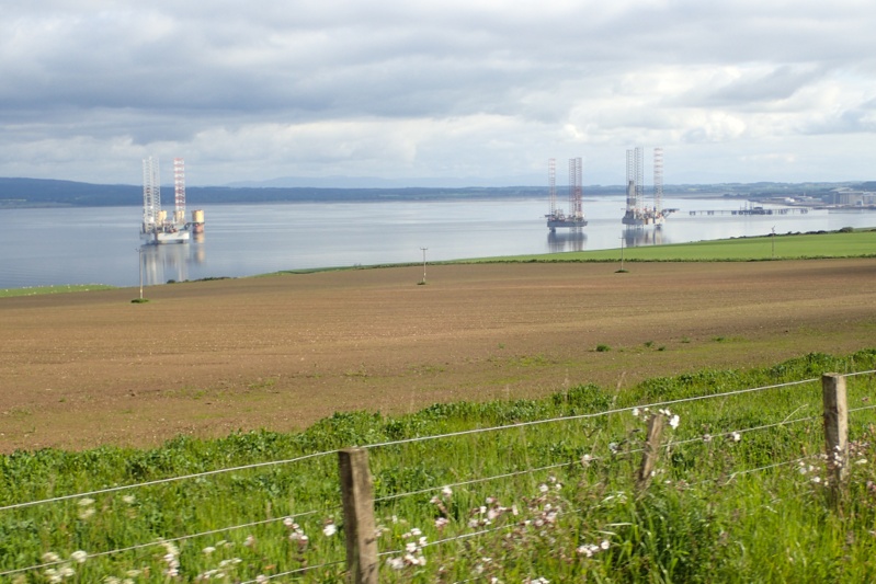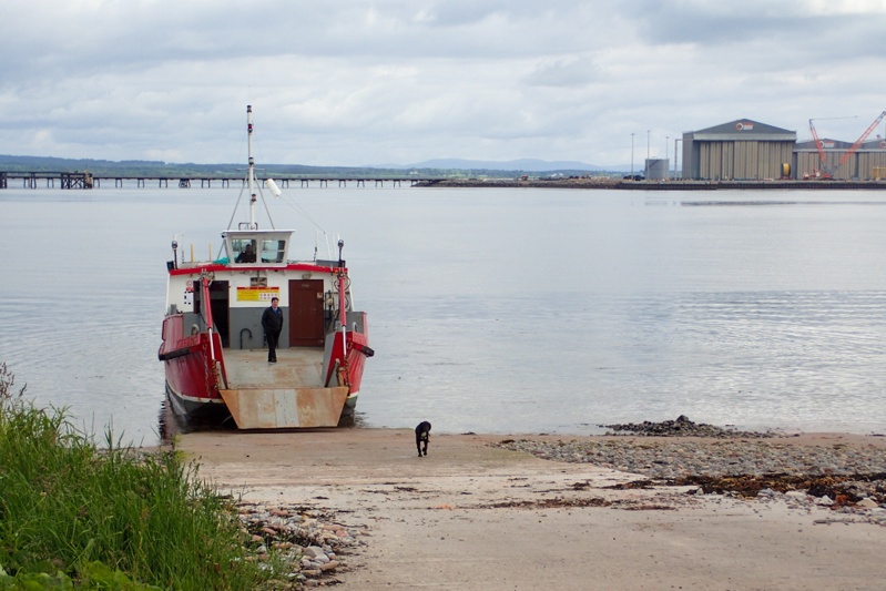 What a great night last night was at Rosemarkie, listening to the sea washing in and out over the pebbles on the beach. Woke to good, steady weather today too. We decided to get ready at a more leisurely pace but were still on the road before eight! A bit of a climb out of Rosemarkie was the only real climb of the day and then we dropped down to Cromarty for the ferry to Nigg. This was a small car ferry which takes up to 3 cars and looking at the space you would fit them, they would have to be small cars. The cool thing about the ferry was the 5 month old Spaniel pup called Oliver who stood on the lip of the closed car ramp as the ferry approached us and jumped off onto the slipway from a height of about 2m. Much to his owner (the skipper's) annoyance.