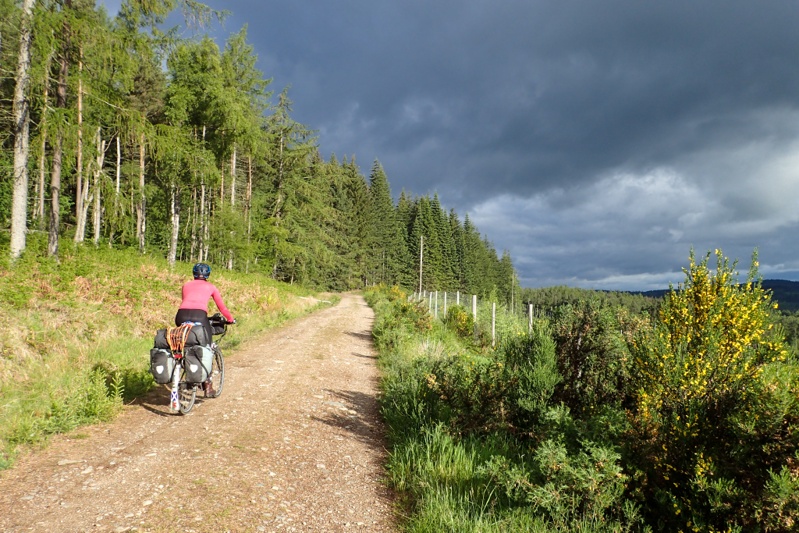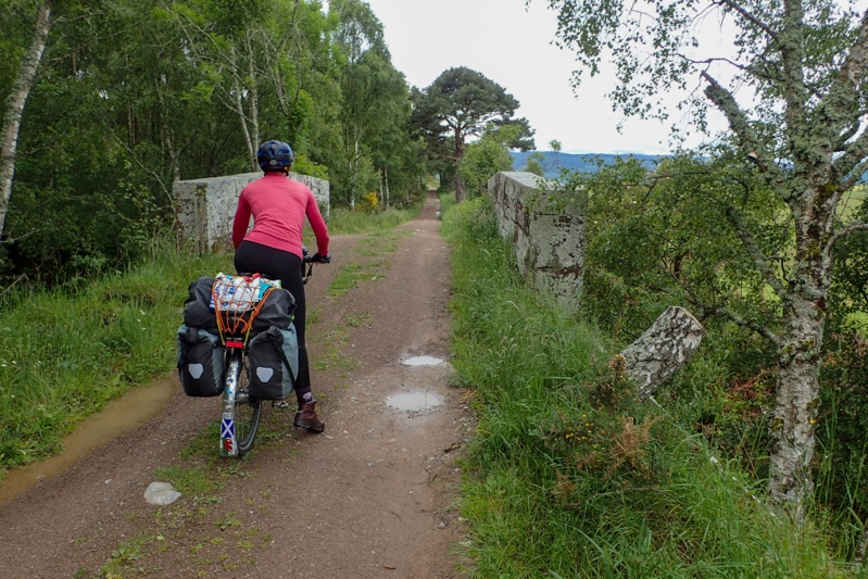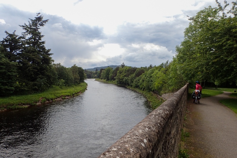 We headed through Aberdeen on the North Sea Cycle Route. Last time we were here we followed it south, this time we turned onto Cycle Route 195 which is the Deeside Way. This is a cycle and walking trail and it is a rail trail! We are happy cycle tourists today. It starts at a park in Aberdeen and is busy for the first 10km as many people from the city use it, so lots of families with little kiddies on bikes, etc. A beautiful bitumen surface. After this is turns to a rough track, sometimes gravel, sometimes rocky. It is not that well sign-posted in parts but we were ok as we had programmed the route as usual on our mapping program/GPS. You pass through a couple of villages with Ballorchy being the largest. It is easy and convenient to shop along the way which we did there. The route is pretty mediocre scenery-wise but a nice recreational option. It took quite a while to actually hit the River Dee which is beautiful and was flowing strongly. The most picturesque part of the cycle route came after Ballorchy when we actually turned off the route and cycled through Blackhall Forest. Lovely forest trails running along the river. We found a good bush camp away from the river and then continued to it to have a swim. The water was not that cold actually! The river is a very popular fishing spot. We did not actually see any fishermen, but there are plenty of bothys and huts, and the grass is kept mowed alongside the river so it all looks very neat. On the other side where there is access from a main vehicle route there are quite a few fancy properties or estates which are landscaped down to the river. We had another rain shower just after we pitched the tent, but as I write now the sun is baking and the sky is blue. Hope it lasts!