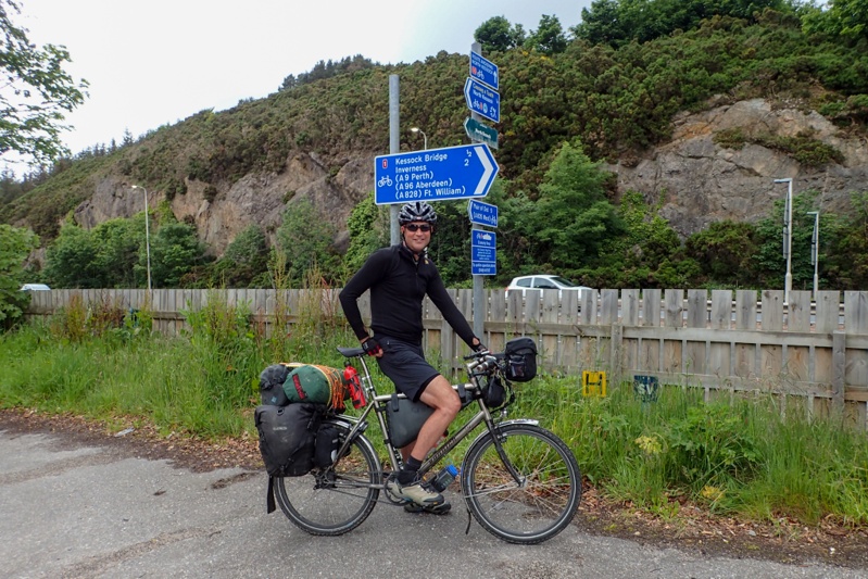 The road passes through all kinds of woodland, from pine plantation to ancient forest before dropping you on the shores of Loch Ness which you follow for a while. After this we passed into Inverness where the route ends. We have been to Inverness before, that day it was very cold and rainy so we thought that that contributed to the dark, miserable feel of the place. Today, though the sun was out, it still felt miserable. Craving a pizza for lunch we looked online and on the strength of that looked at a few places which were disappointing. Eventually we went to Pizza Express in a newish shopping area where you could at least sit outside without being approached by weirdos. The pizzas were tasty but let us say they did not fulfill the metabolic requirements of a cycle tourist and leave it at that.