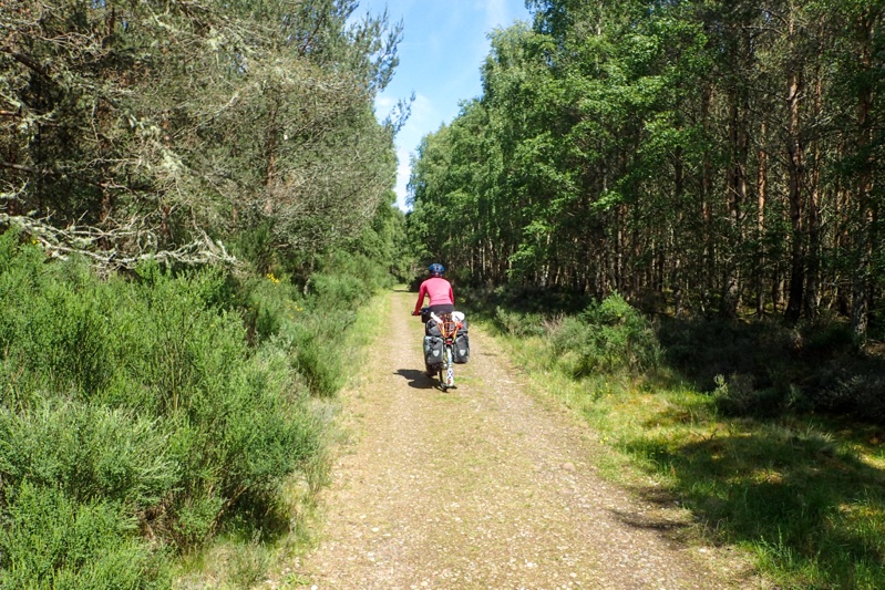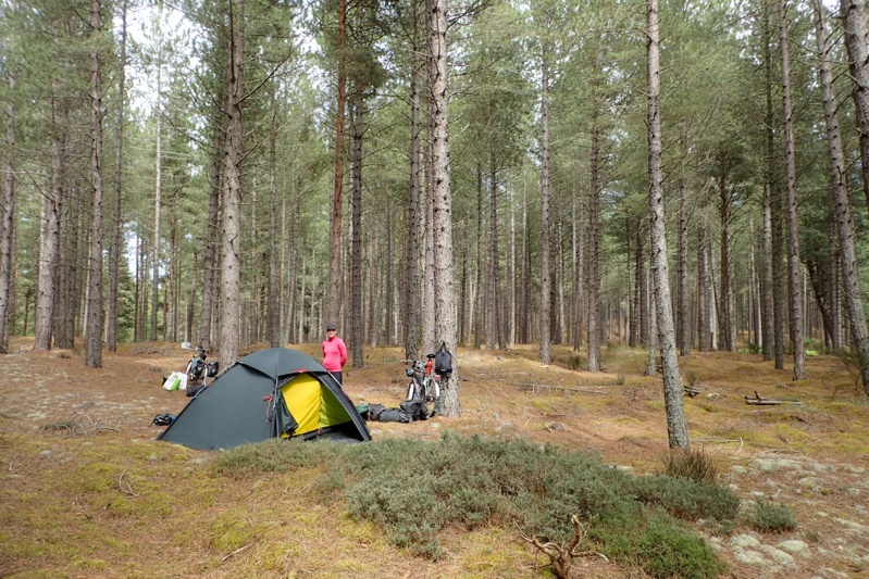 After Nairn our route took us to the Culbin Forest. We cannot recommend this place highly enough. It is a beautfiul pine forest with lichen and forest moss underfoot. NO BUGS!!! We are as amazed as you! There are wonderful flat gravel trails through the forest which is car free. It is great for walking and riding. There are toilets with hot and cold water and benches in the main carpark. We cycled for about 3km and then found a great spot to camp up on a hill on the soft forest floor. Wild camping in the forest is acceptable under the Scottish Outdoor Code which allows for cyclists and hikers to stay the night (or two) under certain conditions. It is a great spot for a rest day as we have only 3 days riding to Aberdeen now over 4 days. We will therefore take a rest day here tomorrow.