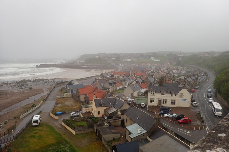 Our campsite just before Banff is your usual seafront holiday park. We have the North Sea pounding the beach metres from our heads. The place is almost deserted. The rate was low, almost the lowest we have had and the shower was hot! Not sure on our plan for tomorrow as yet as the forecast is worse than today, with "heavy rain" predicted. Even now there is a "10% chance of rain", yet it continues like it has for the entire day. Have they not looked out the window at all today? Perhaps they should!