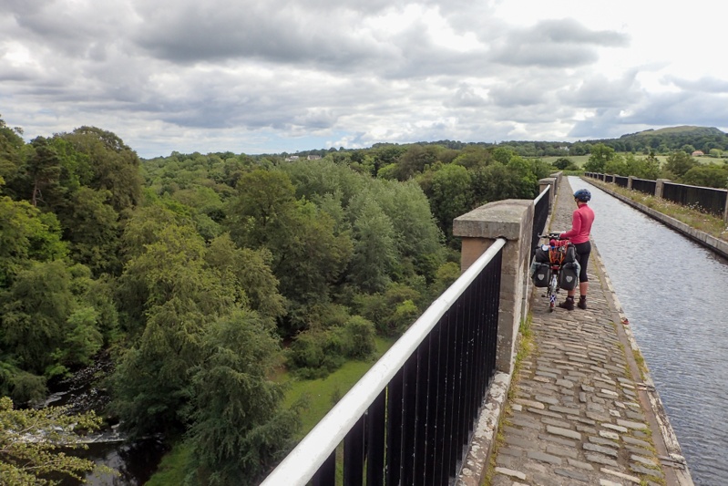 We left the Helix Park and the Kelpies and had a bit of a climb to the Union Canal (we should have hopped on the Wheel too!) and then after that we had many kilometers of happy riding allong this brilliant towpath. We left it at Linlithgow to get a Subway lunch and enjoyed eating it at the edge of a lake in the town which had a few fishermen in boats floating about. One of the fisherman caught a good size fish. We rejoined the route and crossed an aquaduct. This was amazing to experience. It was quite long (I think about 260m) and is basically an "air road" full of water. It is like the canal and the path become airborne (actually like a road bridge). You look down many metres below to the river rushing along it's course. It says a lot for the convenience of canal transport in years gone by that they were prepared to design and build such clever features. There were a further two of these structures, but the first was the longest.