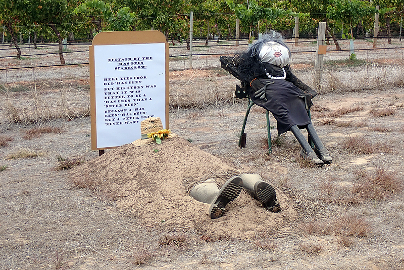 The night was dead quiet until the logging trucks started up at 04:30. We had some bike maintenance in the morning, sorting out a dynamo that we thought was not charging a phone gps correctly, tightening bolts, etc. We ended up leaving around 09:30 again which is really late for us on tour. The first 12km were on good surfaces with short steep climbs. This took us to Trail Hill where the Barossa Valley suddenly appeared far below us in a patchwork of farms. We had our morning coffee break up there before dropping down very quickly to the valley floor. So this is the famous Barossa Valley. You can actually smell the wine around the vineyards. Looks like the harvest is over for the year. Nurioopta is a lovely village/town and we stopped for lunch.