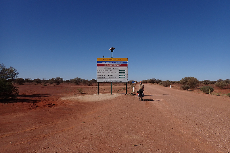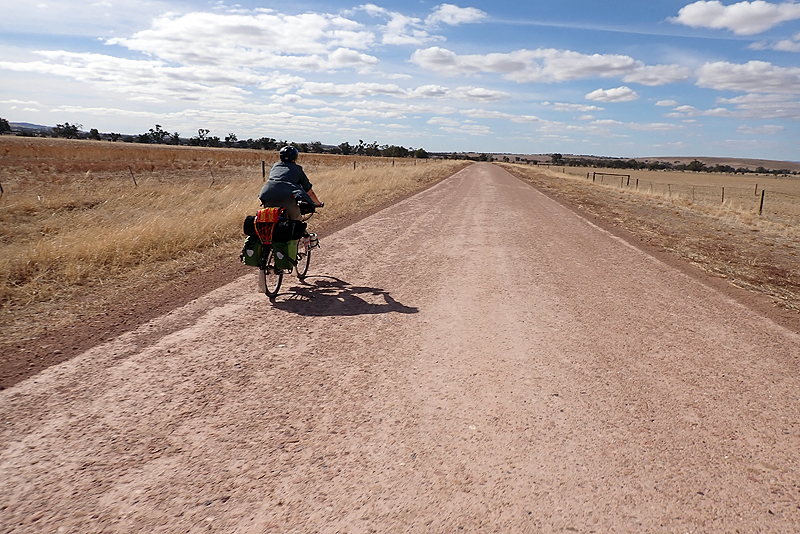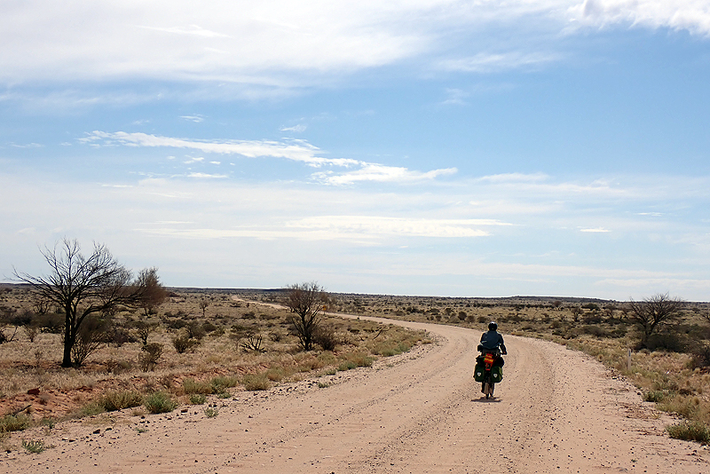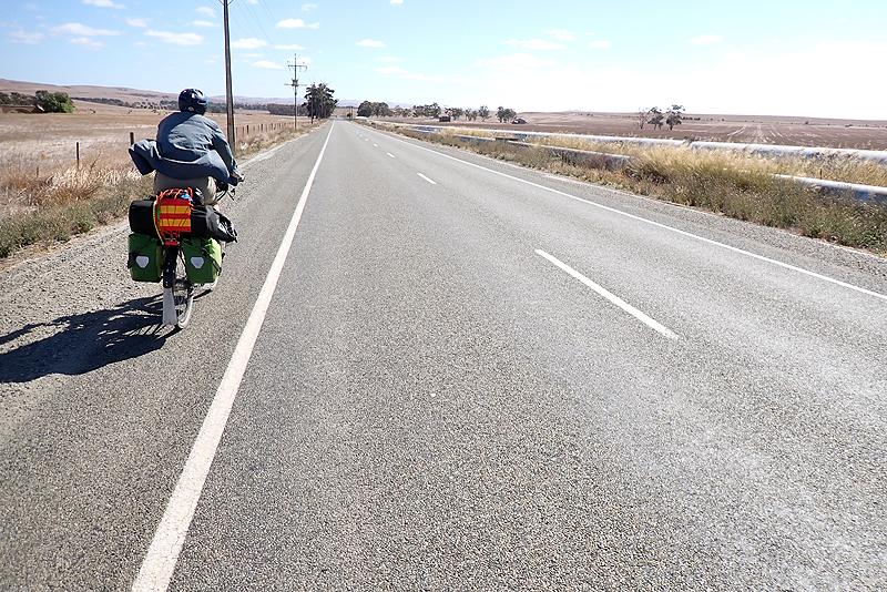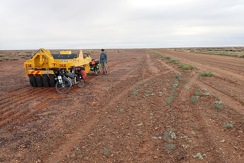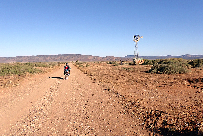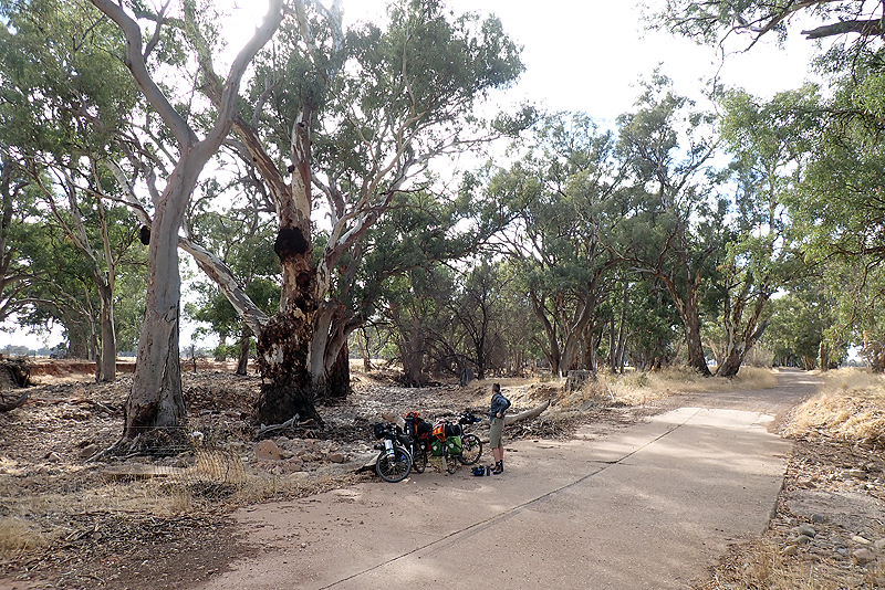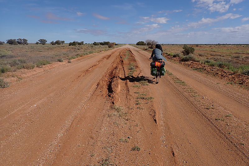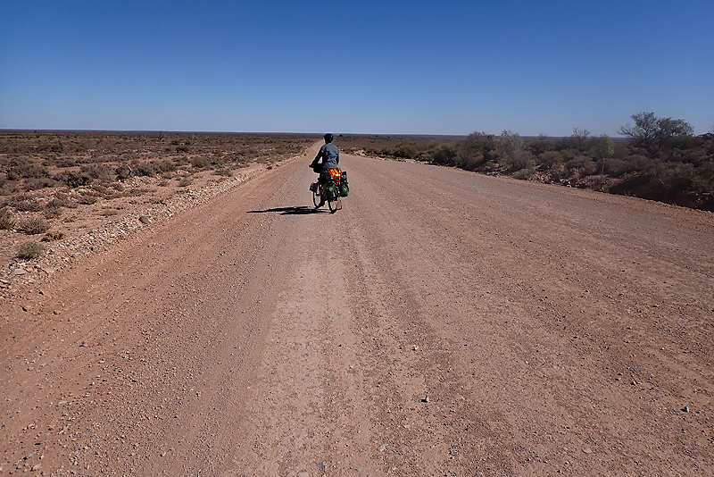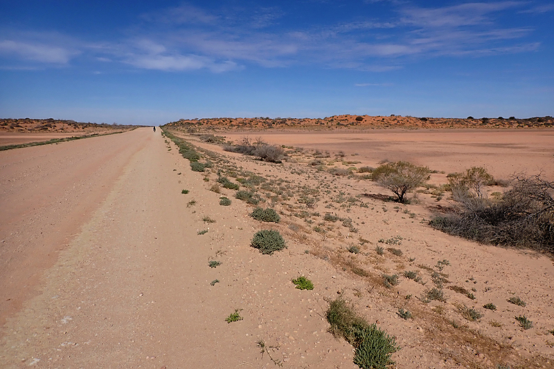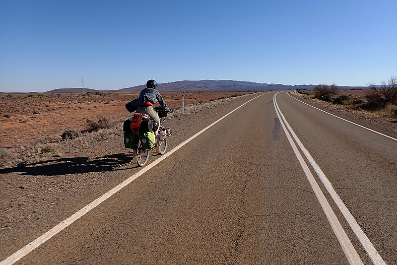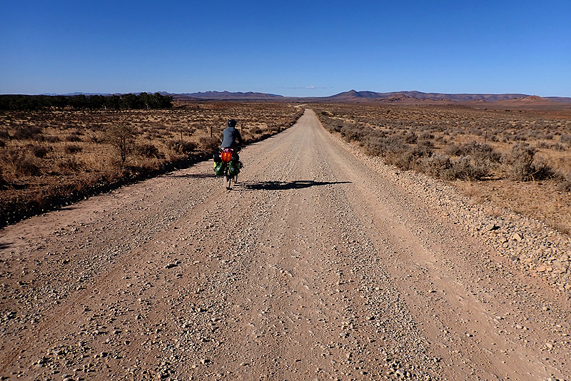 We had a couple more equipment issues today with a bolt holding one of Mike's water bottles in place under his downtube shearing off and he also found a broken stay on his front rack. He was able to repair the latter, but we will need to get some help with the former if we want to use that bottle cage mount. We seem to be able to take this in our stride more now, it helps to be on a decent road! We only have about 40km left in SA and reach NT tomorrow. We have spent 28 nights in SA.
