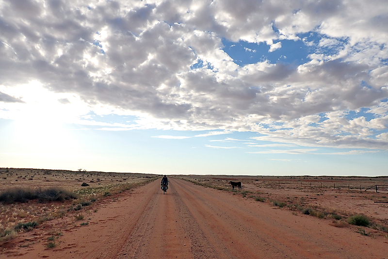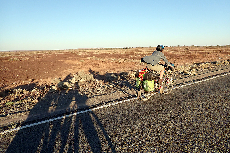Judith (as she was falling asleep), "Do you think we need to worry about dingoes here? Sleeping with the tent outer open makes me think one could run off with one of my cycling boots." Mike responds, "I don't think there is anything here, besides dingoes don't steal boots, they only steal babies." So ends another evening in the great Australian Outback, and these are the things that occupy our minds. Setting off this morning it was only 3 degC and we were followed for a way by a pair of raptors. Smart hunting, they are looking to see if we send any small rodents or rabbits scuttling away and then they will pounce. We have had this sort of bird behaviour before on tour.