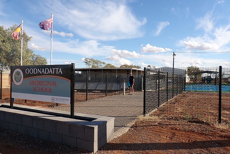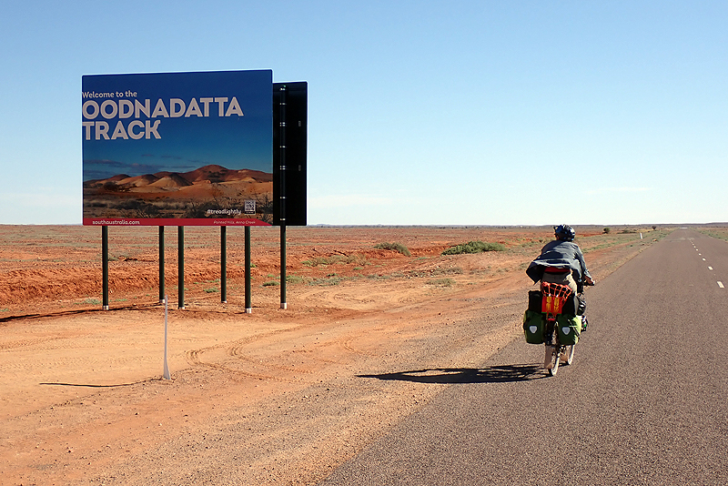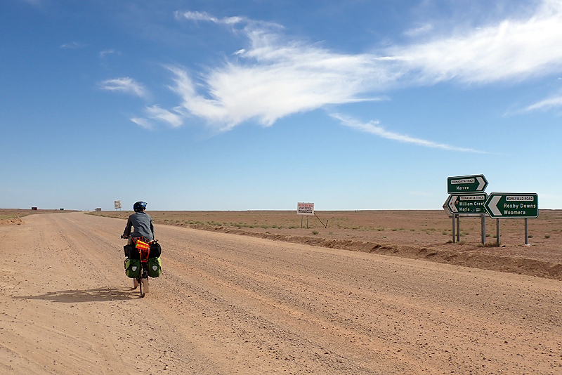 After our rest day yesterday, we were up at 05:15 and on the road by 06:45. It was a fabulous ride, all gently downhill and the road was quiet and, most importantly, sealed all the way. We were expecting it to be unsealed after Lyndhurst for a way. The area is very flat and amazingly barren. There are things to see though, mostly the ever-present old Ghan Railway. We are getting used to the sometimes lunar landscape. We stopped for coffee at Lynhurst ("population 30 (most days)" according to the sign). It is amazing what these small dots on a map provide; in this case clean public toilets and treated water in the tap. Some interesting information boards too about the Oodnadatta and Strzelecki Tracks. The road to Innaminka turned right - no services for 473km. The Oodnadatta was straight ahead.