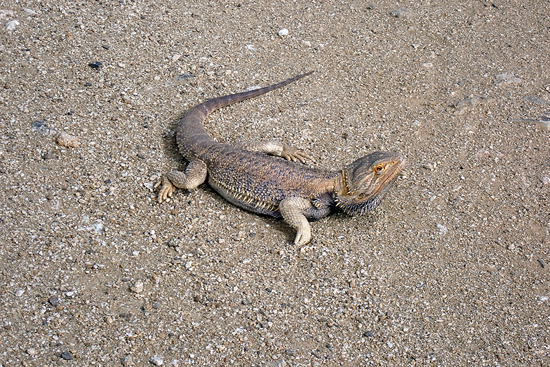 All in all it had been an exhausting morning. We took an hour off for lunch and had a snooze. As the sun was now out it was hot and humid. The road was so quiet that we started to wonder if they had not closed it due to the mud bath behind us. Well it would become a mudbath with high vehicle use. The odd car did pass though. The road remained in good condition for the rest of the day. Nothing to see though. The landscape reminds us of Africa and it would liven things up to see a group of girafffe or something. We did see a lone bull sleeping near the road and jumped to his feet when he heard us coming. We also saw a very still lizard in the middle of the road. That was all. After Algebuckina we found a brilliant bushcamp on top of the hill with wonderful 360 degree views. We have been swarmed on by flies all day, from the time we got up this morning in the darkl and have worn flynets all day. As we got into the tent and the sun went down the mosquitos have come out in droves. It just never ends...