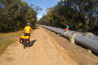 As the track's web site states, the Kep Track is part of the National Trust of Australia (WA) Golden Pipeline project to commemorate the water supply pipeline built in the 1890s to pump water from Perth to Kalgoorlie, and you often end up cycling next to the pipeline for kilometres.