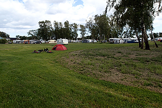 We had planned on the day to be 108 km but found that our planned campsite was in a very busy seaside setting with campervans and caravans jammed in. The sea looked very inviting and the beaches were certainly packed but it was searingly hot and we only wanted to get out of the sun. Along the way we would pass many campsites so kept going and came across Rodlix which reminded us exactly of the Dutch Mini-Camping concept. Small, farm setting, plenty of space and green grass and spotless ablutions. Yip, this is where we would camp. We showered and ate under the trees and waited to cool down! Early to bed. At least tomorrow would be a shorter day.