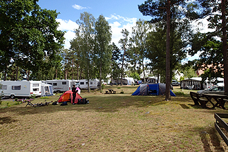 We had been getting out of bed at around 6am but "lay in" 'til about 6:45 am. We had really enjoyed the campsite; it was so beautiful surrounded by lake views. As usual the lake was peppered by small forested islands. The day passed uneventfully along the Sverigeleden Route and we stopped to shop shortly after setting off at Kristineshamn which was a large town about 15 km from our campsite.
