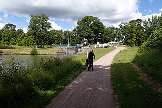 We highly recommend the campsite Kanal Camping. It is an interesting location at the lock on the river and very picturesque. It was probably the first time that we remember tents being properly catered for; on all occasions tent sites are pushed onto a patch of land that cannot be used for campervans or caravans and often have strange slopes, etc. In this campsite the tent sites were on the pond and ours was on a raised piece of land beautifully grassed. Perfect! Also the cheapest campsite we had had.
