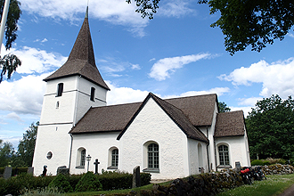 The day dawned bright and sunny and we had an early-ish start (7:30 am) but it was not long before the temperature dropped and the sky clouded over. We ended up cycling in warm clothing for most of the day. We also had a slight headwind for much of the day so progress felt quite slow in places. The route was uneventful, mostly flat but now we saw more of the large churches that we remembered so clearly from our previous trip to Sweden.
