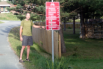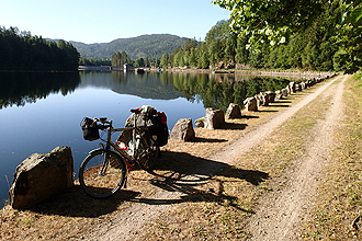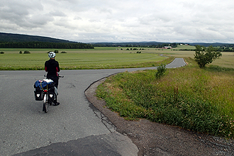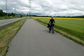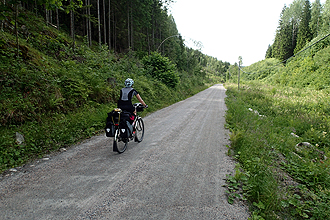 Our route ran along a busy "red-road" for about 5 to 6 km which we had dreaded a bit as it's always daunting taking on the logging trucks, etc. The road was busy but we could soon turn off onto our quieter route again. It just reminded us how spoilt we had become on the cycle ways of Europe; we had taken on traffic like this as a matter of course in Australia where there is no choice in route.