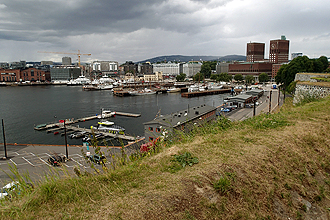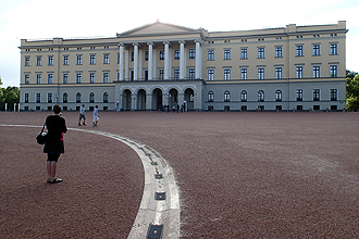 We arrived at our campsite at about 2:15 pm. We then purchased a 24 hour public transport ticket and set off for the city at around 4:30 pm. Unfortunately it rained quite a bit but we checked out the Ackerhus Slot and the shopping and scouted out a place to have dinner. We had been warned about the prices on Norway, and Wow, it really is expensive. We ate at Subway which was good and took the metro one station away. When we emerged the sun was out! So we then had a terrific evening. We went to the Royal Palace, ate delicious soft serve and caught a ferry out to the islands and back. It was beautiful.