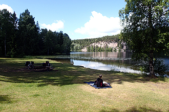 We stopped again with about 20 km to go to shop for supper and then stopped again in Karlstad for an ice cream and hamburger at Burger King! Our First Camp campsite was a couple of kilometres out of town and close-ish to a large supermarket which was ideal as we could shop there again tomorrow morning. First Camp Karlstad was BIG as campsites in the First Camp chain are, but reasonable priced and with all facilities. It was situated right on the lake shore and we took a lovely stroll along the rocks and through the forest in the late afternoon. There was some rain about in the evening but it was a lovely day. What a difference it made to arrive at the campsite around 2 pm as opposed to 5:30 pm. It is always good to have a variety of lengths of days. For a bush camp you don't actually want to get there too early as it generally does not boast the same comforts as a regular campsite.