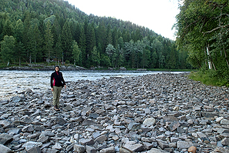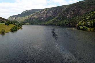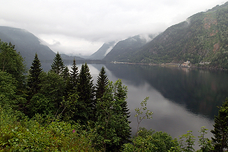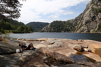 We reached Valle where we shopped as we had very little food stores left. The remainder of the ride was along the river valley. The scenery was indescribable. The water deep and reflective, and perfectly clear and the vertical cliffs and massive boulders tumbling into it.