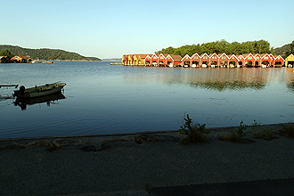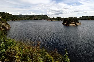 Today's route did take us past many lakes and dipped down to the sea and away from it. The views were great. We started with some solid climbs and then travelled up one side of a river and down the other, climbing up and up. It was good though because once we were up, we were up, and we maintained the height gained. After this we decided to alter the route and remained on more of a main road which was not busy anyway, and then had some more climbing, arriving at Farsund for soft serves, grapes and the usual shop. It is a very pleasant coastal harbour town which was in the swing of summer festivities.