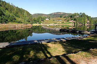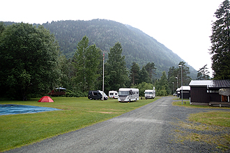 This was the first day in Norway completely on bitumen and without a sting in the tail. However, just before we arrived at our Rysstad campsite we saw our route to Lyboten tomorrow. The start of the climbing road was being resurfaced so was unsealed and the warning sign read "10% climb for 4km". Eek!! Nearly ruined the day!