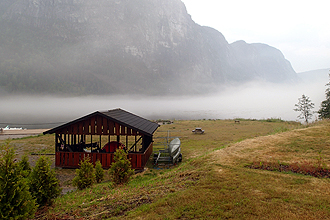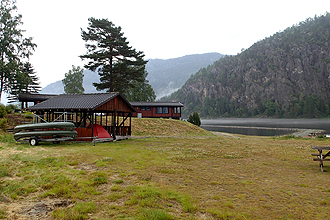 We set off at about 7:30 am and the morning was cool and the road beautiful; still along the lakes. We hit a FANTASTIC downhill stretch that seemed to stretch on forever. It was great. We were on Cycle Route 7 that was signposted at intervals, however the cycle ways are definitely not as promoted (a fair description I think) in Norway as in other countries. As an example, we were really surprised and impressed in the Czech Republic last year to see little explanation signs along cycle routes. This feels very remote. I would say that cycling Norway is probably not a good idea for your first tour as it does feel like you are "out there a bit".