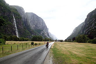 The route then continued along a very narrow lake front road where the views also continued. This road was undulating but the climbs were short. This was the picture-postcard Norway we had expected.
