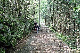 After this break the route continued along gently undulating, smooth roads that sliced through forest so that you seemed on the top of the hill all the time. Although there were still ups and downs overall the day seemed easier.
