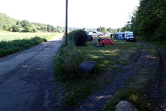 Our campsite was only 3 km from the ferry terminal and although the sign there said "Full", of course cycle tourists can be squeezed in. As was proved as the afternoon wore on and more cycle tourists and motor cycle tourists arrived.