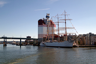 The campsite was good with views of the Oresund Bridge, and also a convenient bus which ran from its back gate to the city. We bought a couple of 24-Hour tickets and spent the day in and around Malmo. We had been keen to go there and it had some pleasant parts but all in all, not much to see. The weather was beautiful though and we had a good day.