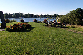 We then rested at the 100 km mark at a small town where we had drinking yoghurt. We now had 30 km to go. The day continually provided glimpses of lakes and rivers and we were headed to Lake Vanersee which is one of two very large lakes in this part of Sweden.