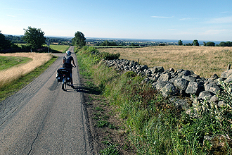 We had a peaceful night's sleep with the waves lapping meters from our tent. As is our habit in the warmer weather, we were on the road at 7:00 am and had a breakfast stop after 20 km. The morning passed easily, beautiful Swedish roads of course. We had 115 km planned to a campsite but planned to look for a bush camp around the 90 km mark. Any extra distance we did today would bring us to Gothenburg for our rest day earlier. We caught three (free) ferries which gave us breaks in the day and also cut some distance off here and there. We stopped for lunch and then took a route which was uphill for a kilometre or two and then a gentle downhill for 9 km, and ended up cutting 10 km off the route. By now we felt we had seen enough to sacrifice the odd sea view that the Cyklesparet will take you by. It was an indication of the easier gradients here, that we saw a few groups of cycle tourists yesterday and today.