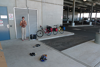 Mike of course cycled to work and then when he got home we had some organising to do. We drove through to his office in the city with our panniers, boxed bikes, etc. and left them there overnight. Then, an early night. Too tired to even imagine cycling to the shop, let alone around an island for two weeks (it is always like this before a tour - you know you'll be fine when you are on the bike, it's the getting ready that kills you!!)