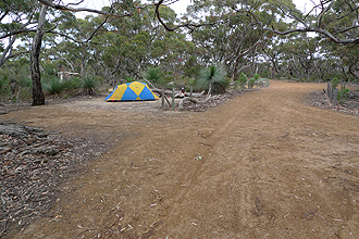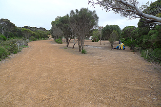 The day passed uneventfully - we stopped for a rest at Parndana - the last supply post on the day - but we had enough food for quite a few days. We hit the gravel road section towards Cape Borda Lighthouse after about 66km. The gravel road started off very well and was wide all the way, but any twists and turns in these roads cause the gravel to bank up and form corrugations and slip hazards. Also, as you have to slow your pace the flies descended into eyeballs, etc. I stopped to put on a fly net. We arrived at Harvey's Return Campsite which is a few km's short of the lighthouse at Cape Borda around lunchtime and it was a beautiful spot - it has to go down as one of the most beautiful bush campsites ever. We had been worried about availability of drinking water at these bush camps, but there were no problems. This one had a huge rainwater tank and two pit toilets - the whole place a clean, fresh feel to it. There had been recent rain. Amazingly the campsite was just off the main gravel road and there were clearly designated camp spots. The only other campers were some elderly people who had set up brilliant comfy camps and spent their days doing day trips. In total we cycled about 98km that day but all in all it was a breeze.