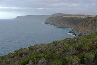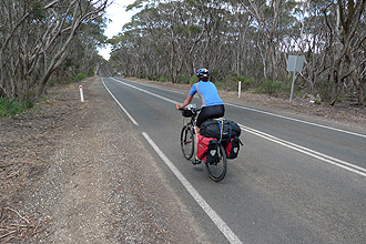 When we had first planned a tour in Adelaide, we had thought to cycle the 200-odd kms through the Barossa Valley to Cape Jervis ferry terminal, but were we please we changed our plans! The road is narrow, undulating and has no shoulder (it would not have been fun having a bus drive past you) and drops off steeply to farms or river valleys far below. It is very picturesque though and we really appreciated being in the bus and not on our bikes! As we had 2 weeks for the trip and we thought that there was a fair amount to see on the Island, we decided it was better use of our time to spend all of it on the island, instead of getting there and back.