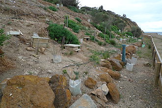 The campsite is remote, surrounded by huge Blackboys and eucalypts. Perched on the edge of a cliff you felt like you were on top of the world. Our "bath" was the sea at the base of the cliff - a VERY STEEP climb down and a slog back up but worth it. The name Harvey's Return comes from the supply point that was created on the beach. Boats would bring supplies for the lighthouse station at Cape Borda and the remains of the horse-drawn winch trackway (and landing site) used to pull the supplies up the steep path. We camped there for two nights and it was amusing to watch tourists arrive to do the Harvey's Return Hike to the beach and for us that was just a trip to our ablutions! On our day off we walked to the Cape Borda lighthouse along the 9km long Return Road Hike - very quaint and saw the cottages for hire - the island has renovated the old light keeper cottages and they seem very reasonably priced and a nice place to stay. The lighthouse keeper's graveyard was also very interesting - you can only imagine the tough quality that a man would have to posses to live in such a place and many had families that came along too. It was so nice and peaceful having the entire lighthouse area to ourselves.
