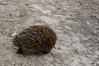Eventually we arrived at the ferry terminal and it looked a perfect day for a ferry trip! We loaded our stuff out the bus and had the bikes tied up on the ferry. The ferry left at 9am. Quite a few people bring their cars over and then buses come over on the ferry as well. There is a range of accommodation on the island - two caravan/camping parks and other bed and breakfasts and also very popular are the old lighthouse keeper's cottages which are for hire and very reasonable also. We spent most of the trip outside - it took around 45 min. Upon arriving at Penneshaw - one of two main towns on the island, we got ourselves organised before we started thinking how getting on a bike right then was not our first thought! It is a very beautiful little settlement and the bay is just gorgeous - crystal clear water and white sands. Had there been camping facilities there we would definitely have stayed, but had decided to move on to Kingscote which is the largest town on the island, and about a 65 km ride away. We set off at about 11 am and after about 1 or 2 km encountered a ridiculously steep uphill which was a bit of hard work. The rest of the day's ride was no drama at all - we passed Brown's Beach where we had thought of camping at the end of the trip - about 13km from Penneshaw. We had planned to do a lot of gravel road cycling to get to some really pretty coastal spots - the main road is often inland and one needs to use the unsealed roads to get to the coast. We arrived at Kingscote - actually the caravan park was at Brownlow , a very pretty place at the beach - at about 4pm. I was suffering from hay fever in a BIG way. We had planned to move on the next day to Scott's Cove, but decided to stay an extra day at Kingscote-it was a holiday after all! We were on the island and could take our time. We cycled through to Kingscote that evening to buy some drink and food etc - it was about a 5km ride there and there was an IGA that was well-stocked. We spent our rest day in Kingscote walking from the caravan park into the town along the coast. Our first stop was a chemist for hay fever tablets. The weather was lovely - quite cool. We checked out the penguin breeding area- little wooden huts have been built for the penguins to nest in - it is very cute. We also purchased a fabulous map of the island illustrated with drawings of the animal and birdlife we could expect to see - the most popular type of bird that would visit us at every campsite was the superb fairy wren - a tiny brilliant sapphire blue coloured bird that would hop about. We went to the National Park Office in Kingscote to enquire about bush camps in the Ravine des Casoars National Park - bush fires had ravaged the area in summer 2007 and it was still closed to campers. The lady working in the office was very helpful. The geocaching was not so successful - but we had a good day - tiring with all the walking.